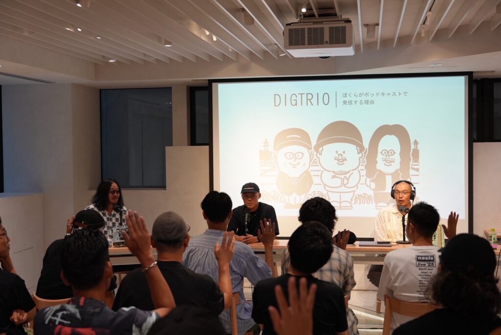 第一部では、「ディグトリオ」を素材としたドキュメンタリームービー「ぼくらがポッドキャストで発信する理由 | MY LIFE, MY WORK」(2025年3月からVimeoにて有料配信中)を鑑賞。