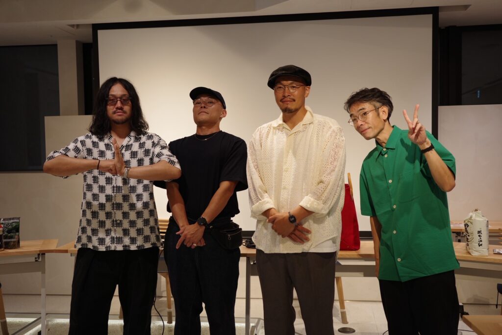 続く第二部では、本作品を制作された映像プロデューサー・前田聖志さんも交え、ポッドキャスト番組の公開収録(トーク)を行いました。前田さんからは、本作制作過程のこぼれ話や裏話が、ディグトリオのお三方からは、それぞれの目線/切り口で新潟に関するプレゼンテーションが展開されました。普段の番組では正面から地元新潟について語ることはあまりありませんが、この日は会場がTHE NIIGATAであるということにご配慮いただき、変化球を織り交ぜながらも新潟愛溢れる話をたっぷり(90分超!)していただきました。