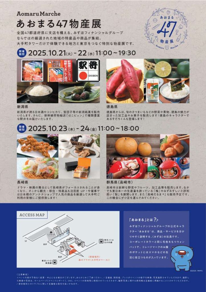 この度、10月21日(火)・22日(水)の2日間、大手町タワーB2F「森のプラザ」にて開催される「あおまる47物産展」に、新潟県ブースとしてTHE NIIGATAが出張販売いたします!