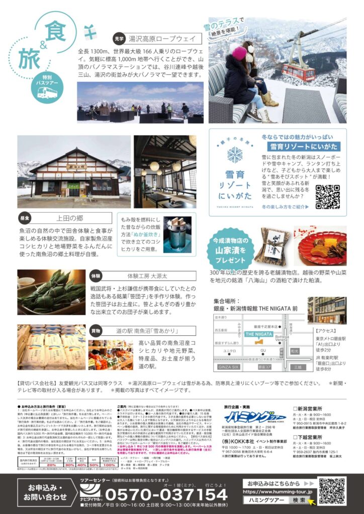 銀座・新潟情報館 THE NIIGATA では、冬の銀座発着・日帰り新潟バスツアー(第2弾)を開催いたします。