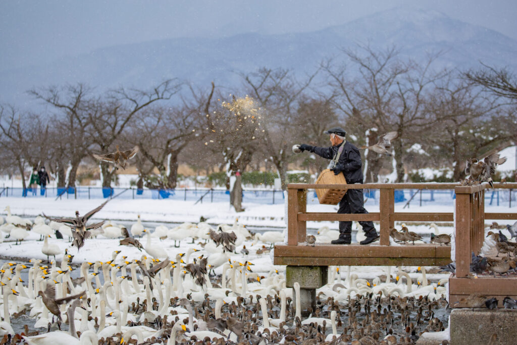阿賀野市は、新潟平野のほぼ中央に位置し、白鳥の渡来地として有名な「瓢湖」や五つの峰からなる「五頭山」、3つの温泉地からなる「五頭温泉郷」など、豊かな自然に恵まれたまちです。