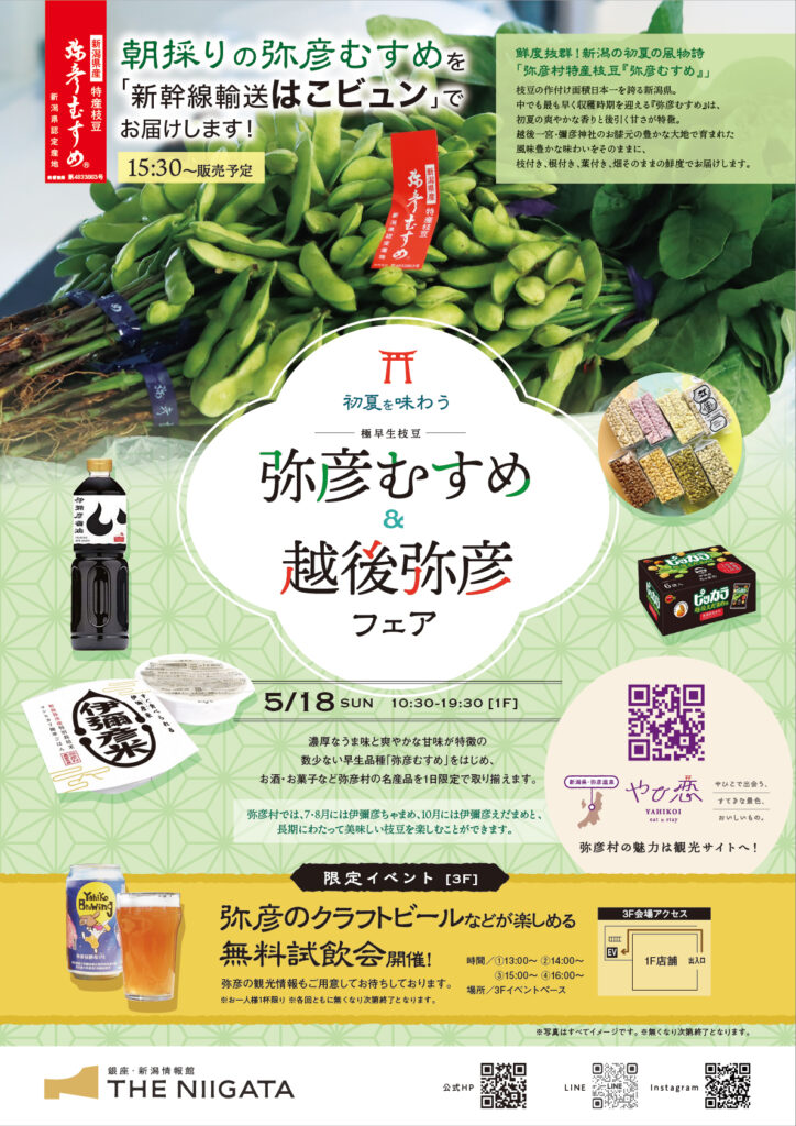 | イベント名 | 極早生枝豆「弥彦むすめ」&越後弥彦フェア |