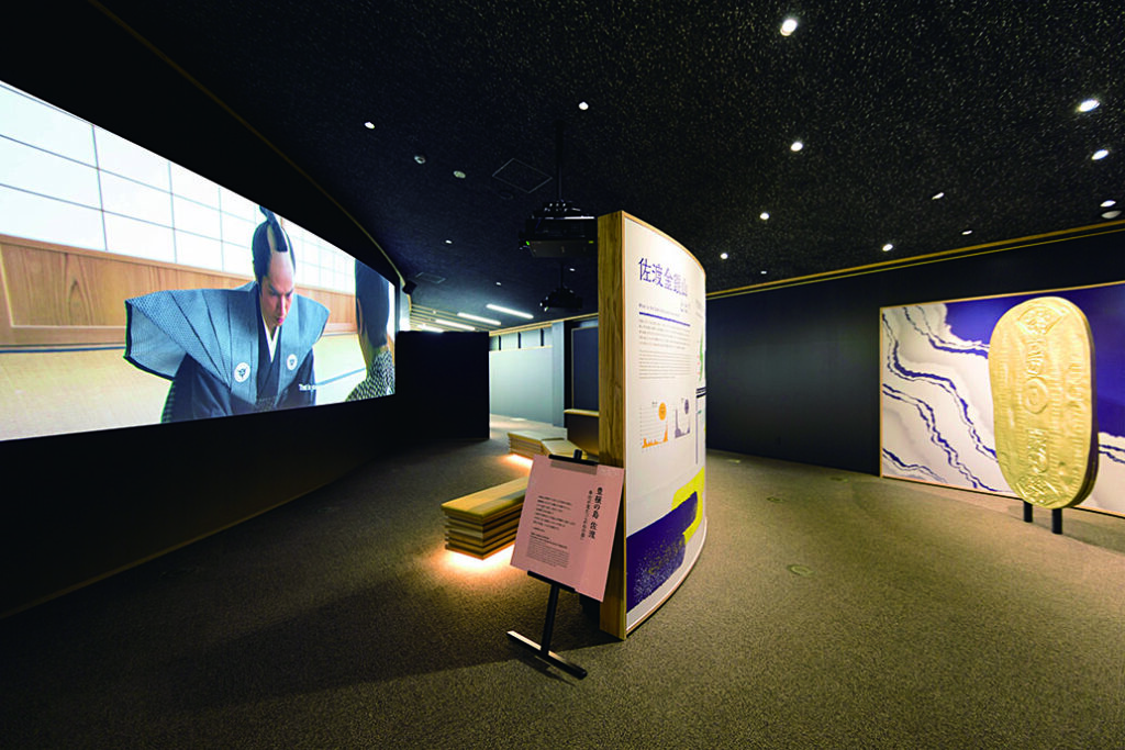 「佐渡島の金山」を知るために最初に訪れてほしい施設。金採掘の歴史を紹介する展示のほか、金銀生産システムの様子をプロジェクションマッピングや迫力ある映像で分かりやすく解説しています。