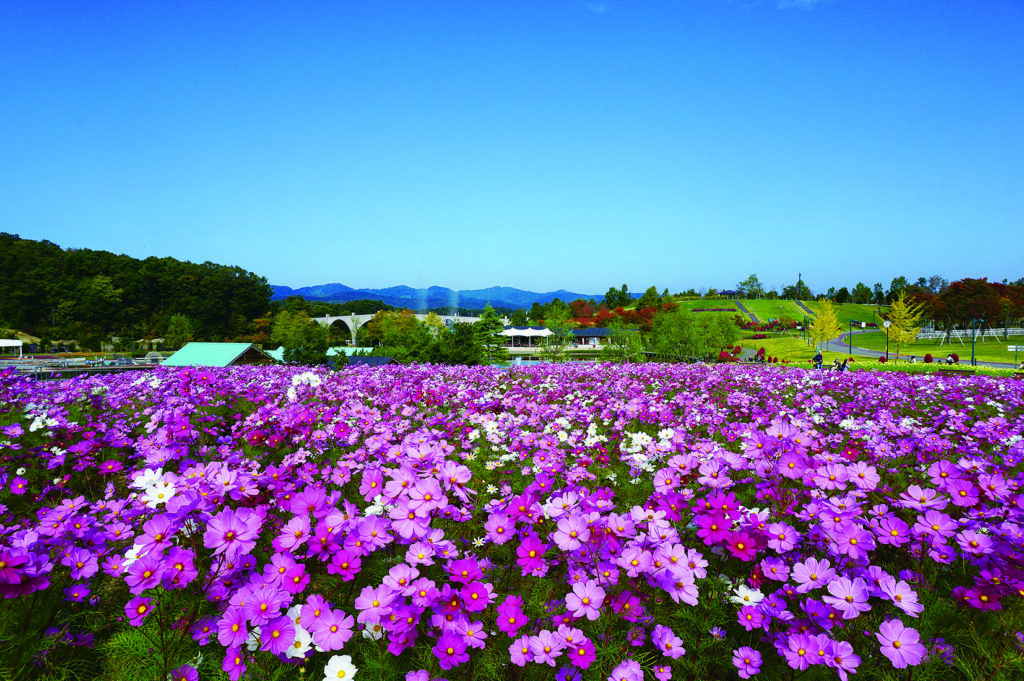 赤・白・ピンクの愛らしいコスモス、約25万本が園内を彩ります。また、10月中旬頃に は、新潟県内ではあまり見られない、やさしい黄色のイエローコスモス5万本が開花。秋風に揺れる可憐なコスモスをご覧ください。