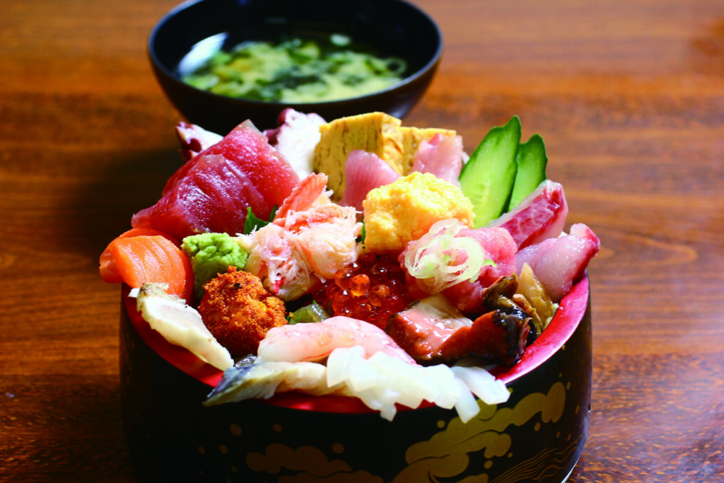 その日の仕入れ次第でネタの内容が変わる『海鮮丼』は、わざわざ海を渡って行く価値ありの一品。海の見えるゆったりした 座敷席で日本海の幸をたっぷり 堪能できます。