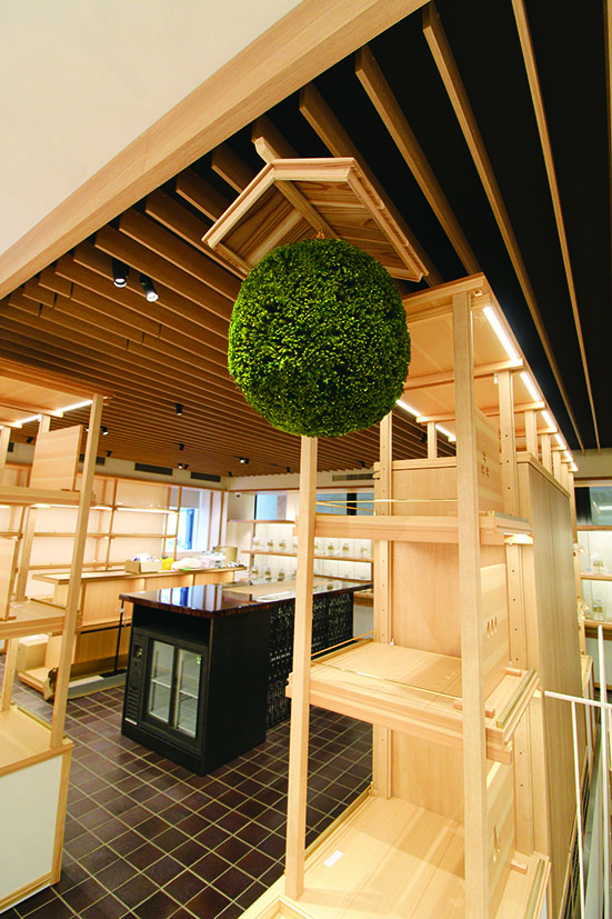 酒造や酒屋の軒下に吊り下がる「杉玉」。THE NIIGATA 2階にも新潟 県産杉で作った杉玉を飾っています。杉玉が緑色から枯れた茶色に変わったら、ひやおろしが美味しい季節です。