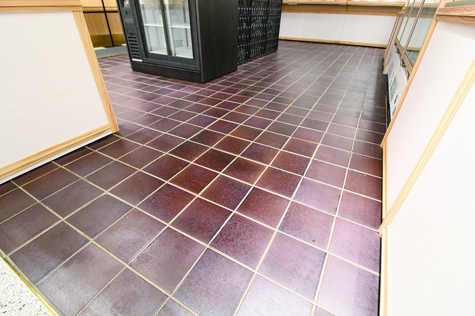 また、2Fの一部フロアには、阿賀野市の「安田瓦」を使用しています。高温で仕上げられた安田瓦は、表情が豊かになることが特徴。独特な鉄色をした瓦は、施設内を美しく演出しています。(右)