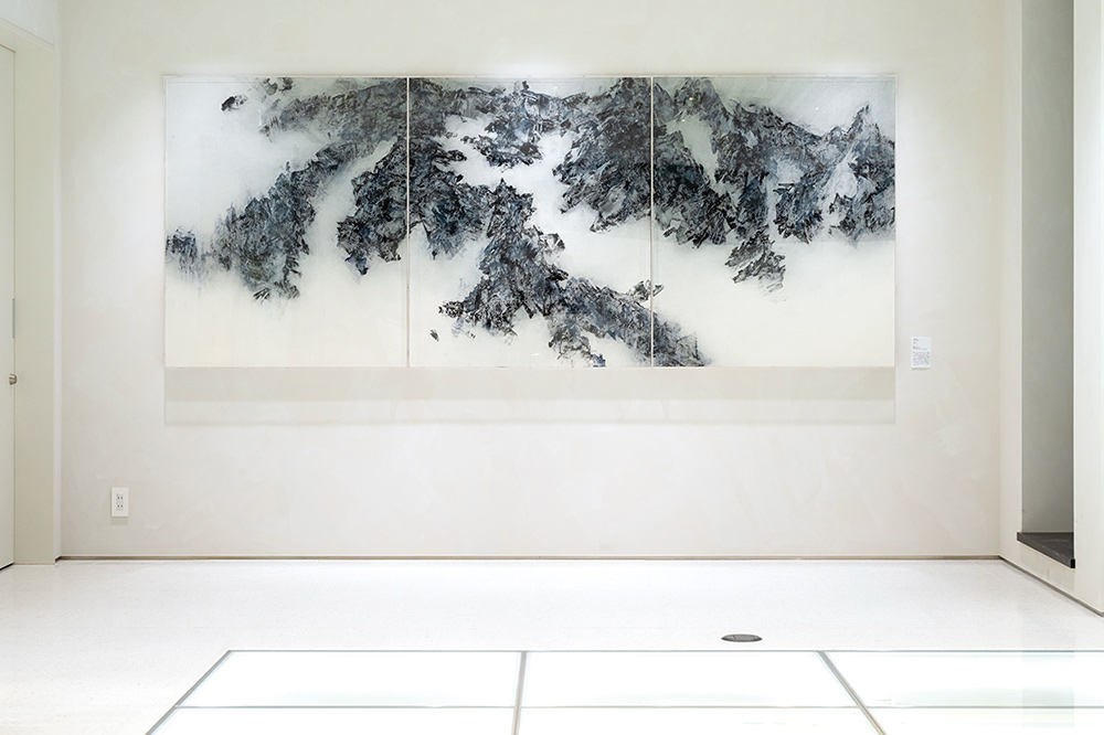 南魚沼市にある霊山「八海山」を表現した作品。霧に包まれた八海山の壮大さや近づき難しさ、そして霧が晴れると美しい青空の下に現れる山容、岩や残雪に映る青などが描かれています。作品のタイトル「Reach」には、八海山 が人々の手に届く存在であると同時に、南魚沼を巡ることでようやく辿り着けるという、2つの思いが込められています。(作者:春原 直人 氏)