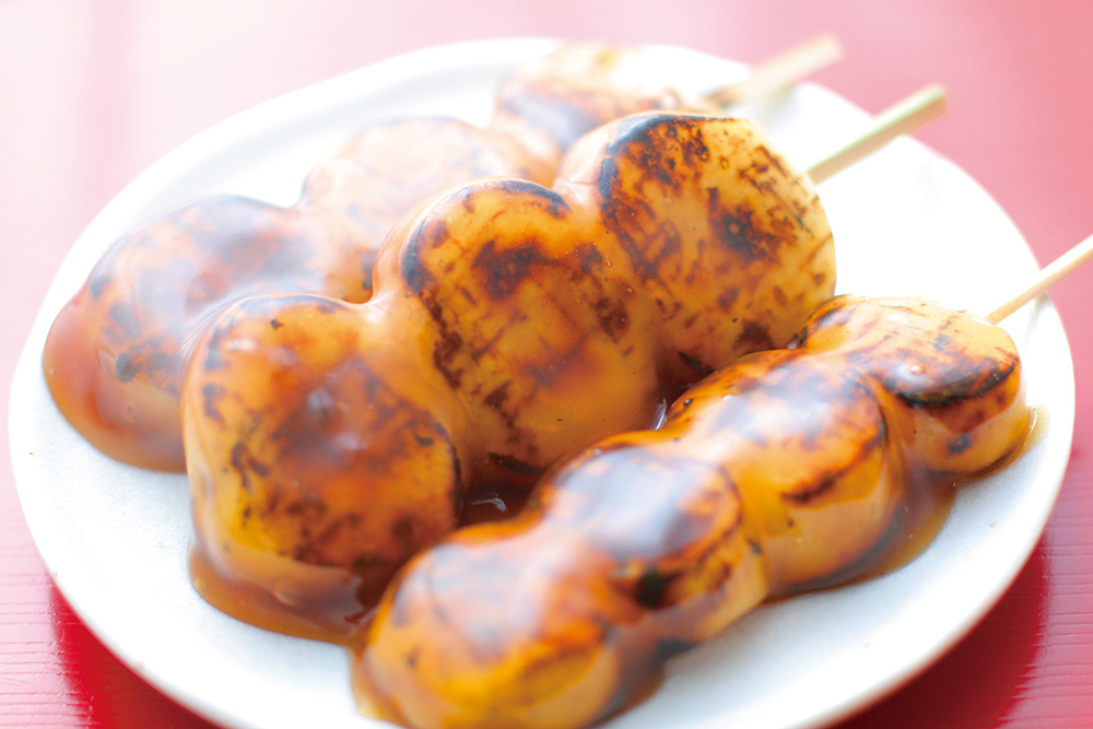 上質新粉を用い昔ながらの製法で作るだんごは、秘伝のタレと焼き目の香ばしい風味が特徴。外はカリカリ、中はふんわりとした食感がクセになります。
