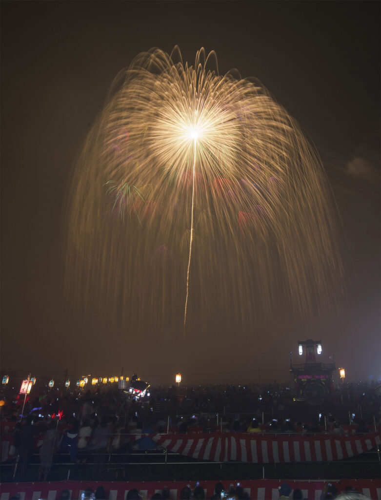 江戸時代中期以前から続く、歴史ある花火大会。奉納という形で打ち上げられる花火には、家内安全や健康祈願などの思いが込められています。2日間で6 発打ち上げられる日本一の三尺玉と、ギネスブックにも掲載された世界一の四尺玉の打ち上げが見どころです。