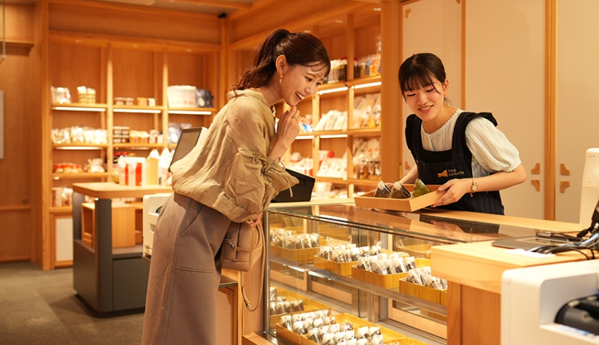 新潟米のおにぎりを販売する「THE ONIGIRI・Ya」のほか、新潟で収穫した野菜や果物、日本海の海産物、お菓子、都内ではここでしか買えない商品など、選りすぐりの商品を取り揃えています。また、新潟の食やイベントなど、テーマに沿ったスライドショーを展開する情報発信コーナーもあります。