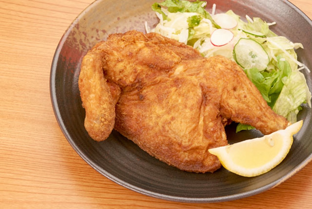 鶏の半身を丸ごと揚げる「半身唐揚げ」は、別名「半身揚げ」や「半羽揚げ」とも呼ばれており、1羽を半分にして、そのまま姿揚げにした見た目も豪快なローカルグルメです。