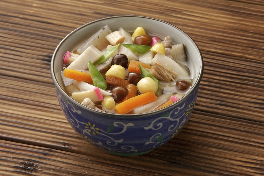 新潟県の家庭料理であり、お正月の定番でもある「のっぺ」は、里芋で独特のとろみをつけた煮込み料理です。
