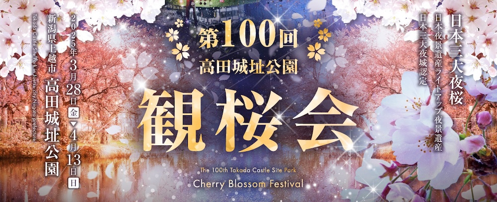 新潟県内にはさまざまな桜の名所がありますが、なかでも〈高田城址公園〉の桜は、日本三大夜桜と呼ばれ、例年開催されている「高田城址公園観桜会」が今年で100回目を迎えるということもあり、特に注目されているスポットのひとつです。